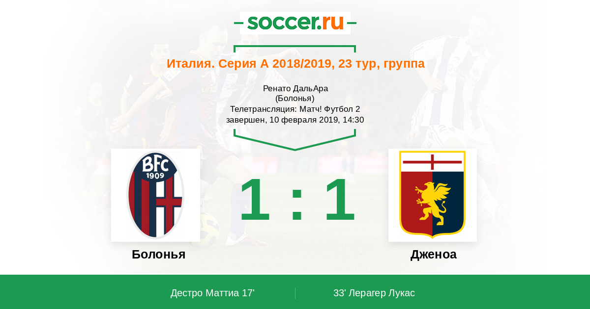 17' (1:0) Дестро Маттиа (22) (Поли Андреа (16))