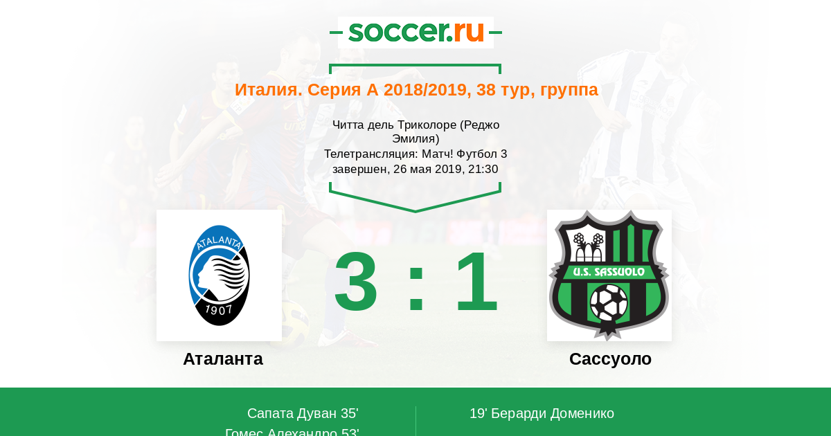 Аталанта - Сассуоло