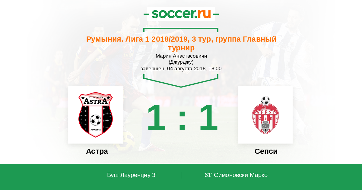 3' (1:0) Буш Лауренциу (17) (Лулаку Аздрен (10))