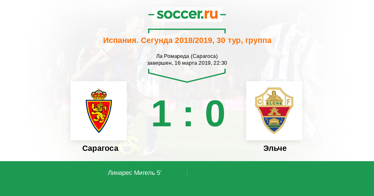 5' (1:0) Линарес Мигель (7) (Пеп Мас (26))