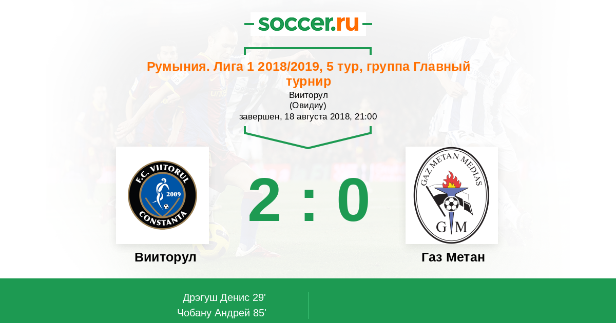 29' (1:0) Дрэгуш Денис (13) (Младен Себастьян (5))