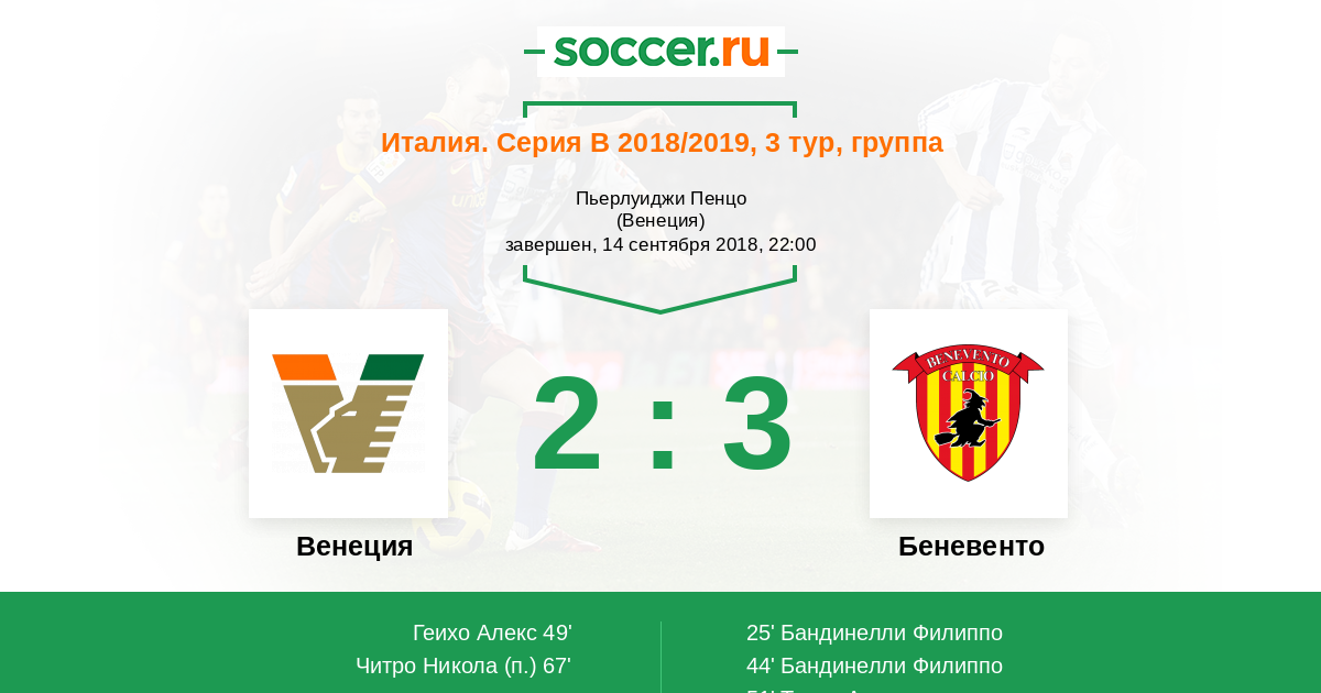 25' (0:1) Бандинелли Филиппо (25) (Риччи Федерико (27))