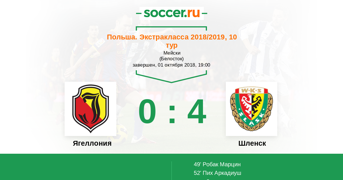49' (0:1) Робак Марцин (9) (Чолевиак Матеуш (11))