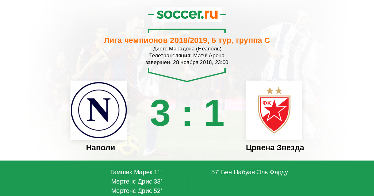 52' (3:0) Мертенс Дрис (14) (Гамшик Марек (17))