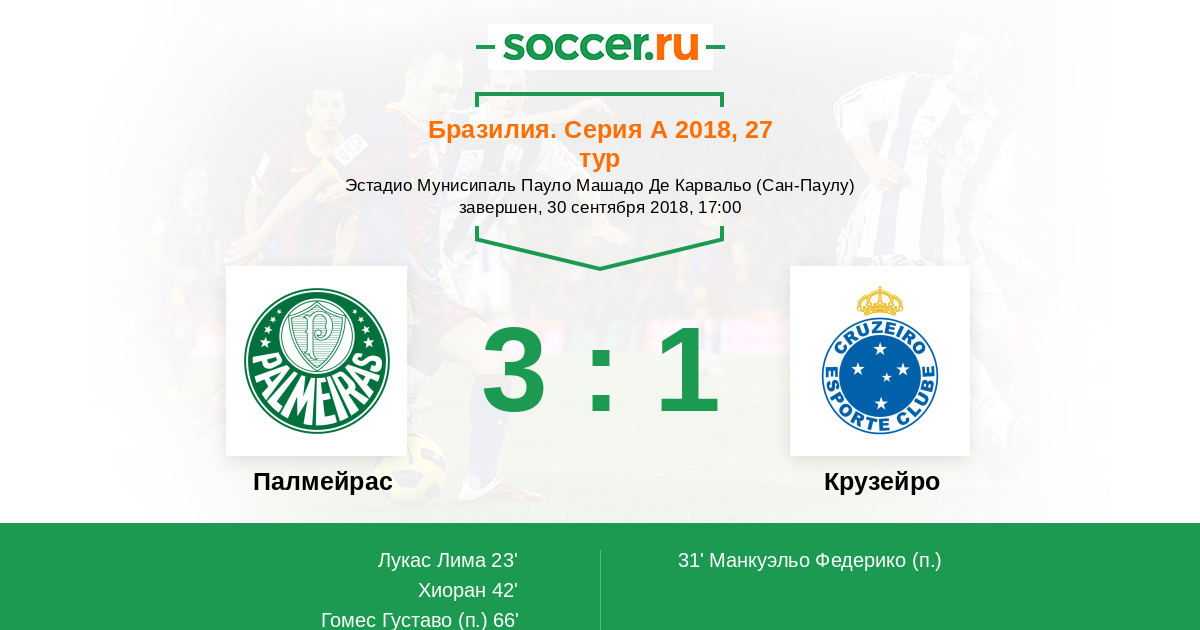 23' (1:0) Лукас Лима (20) (Дуду (7))