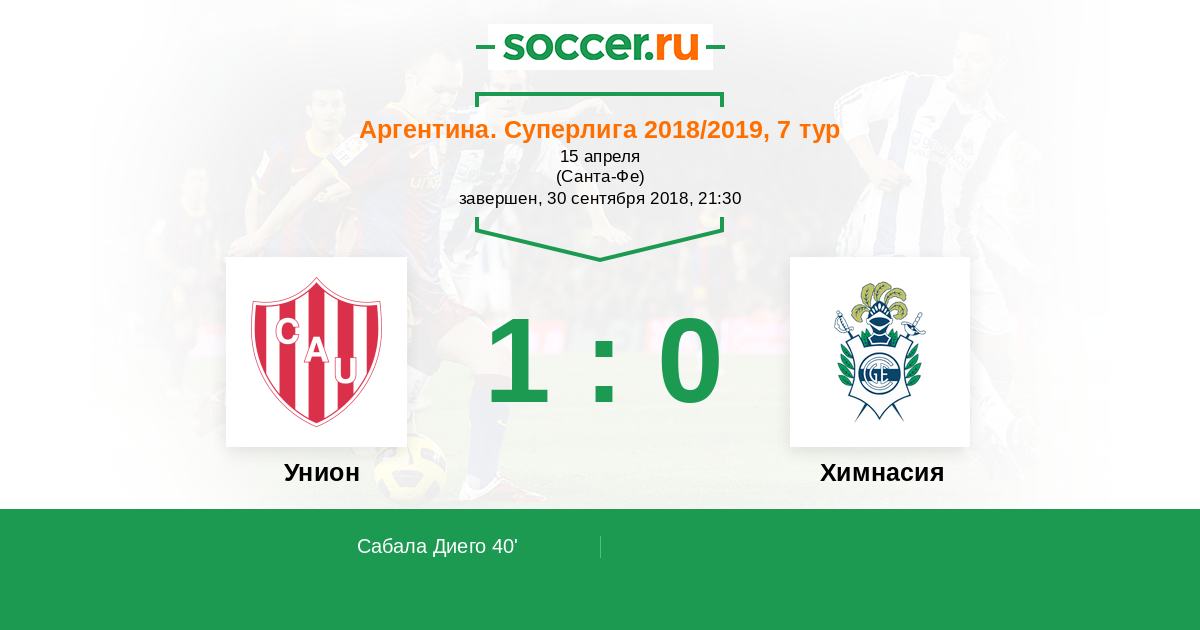 40' (1:0) Сабала Диего (11) (Фрагапане Франко (7))