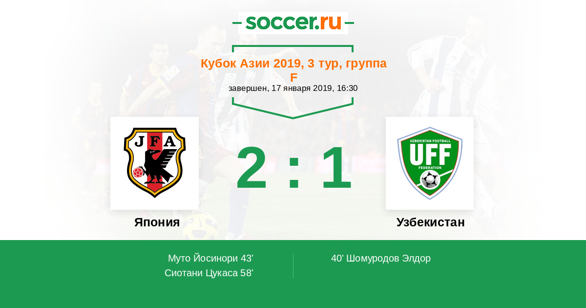 40' (0:1) Шомуродов Элдор (14) (Хамдамов Достонбек (17))