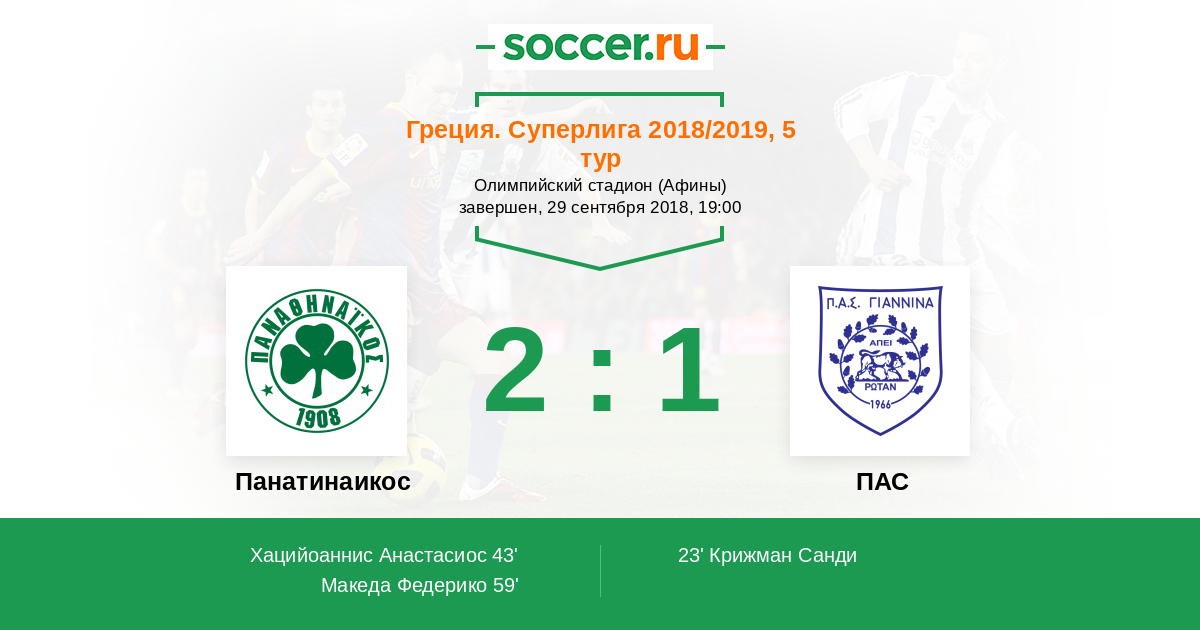 43' (1:1) Хацийоаннис Анастасиос (11) (Кулибали Усман (78))