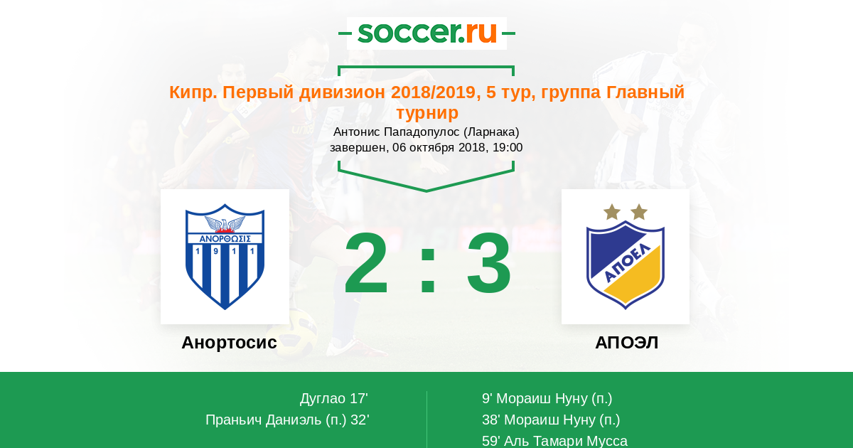 Запасные: 7 Энглезу Никос (с 57'), 21 Лаборде Рикардо (с 73'), 9 Качарава Ника (с 84'), 2 Коффи Эрнан, 4 Артуматас Панайотис, 23 Экономидес Гиоргос, 24 Сиссе Секу, 44 Качар Гойко, 99 Деметриу Деметрис