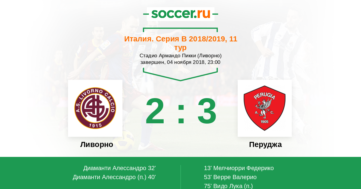 32' (1:1) Диаманти Алессандро (23) (Агацци Давиде (34))