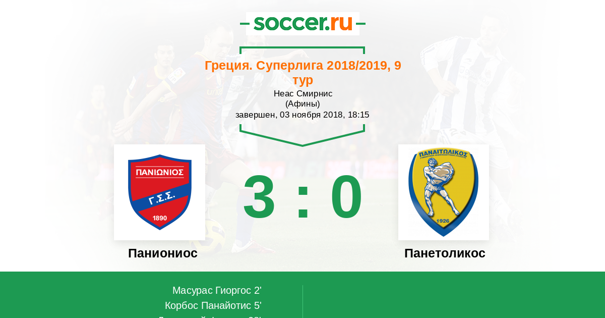 5' (2:0) Корбос Панайотис (7) (Оикономидис Иоаннис (16))