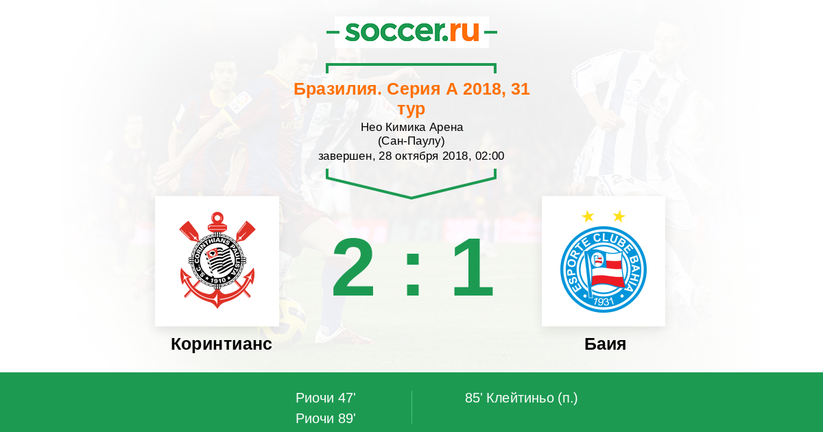 47' (1:0) Риочи (20) (Фагнер (23))