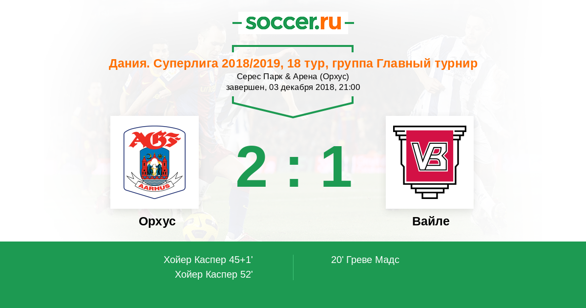45+1' (1:1) Хойер Каспер (16) (Анкерсен Якоб (7))