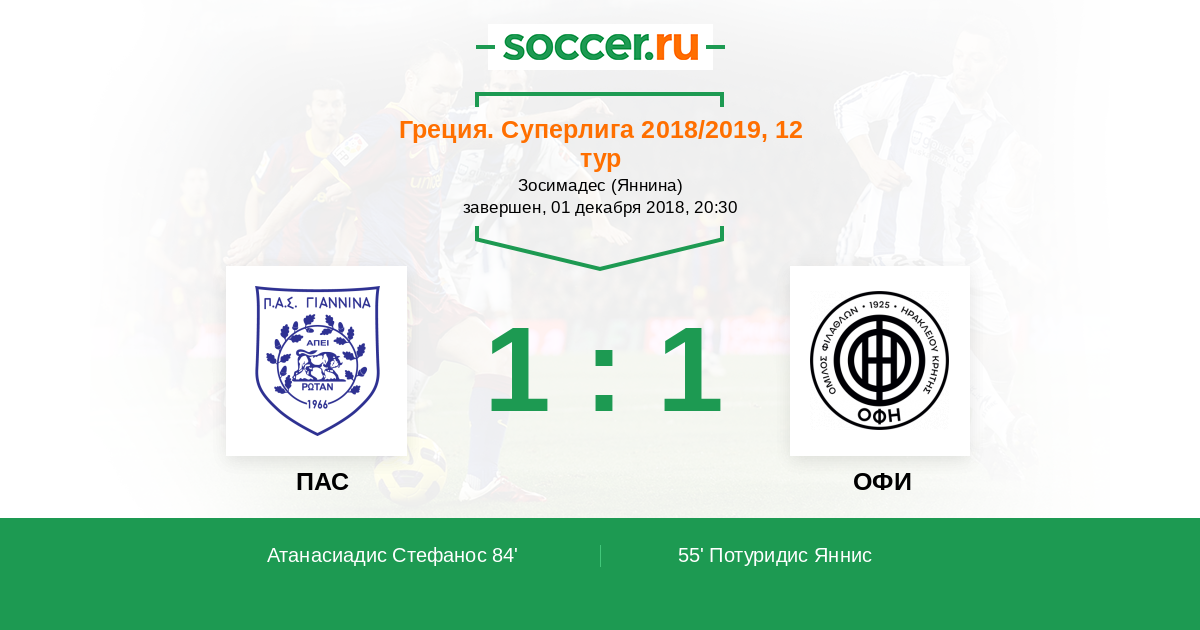 55' (0:1) Потуридис Яннис (92) (Плателас Евангелос (10))