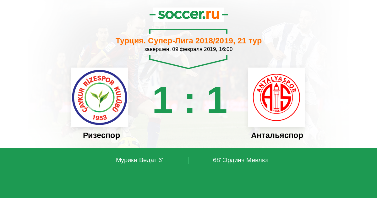 68' (1:1) Эрдинч Мевлют (66) (Назим Сангаре (30))