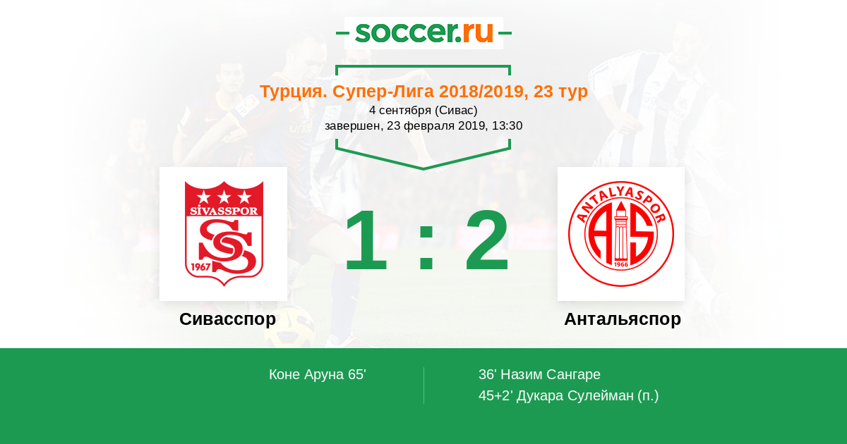 65' (1:2) Коне Аруна (2) (Дуглас (20))