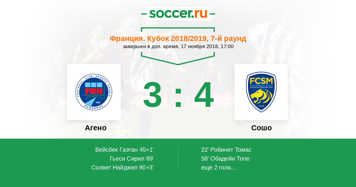 Запасные: Хюльш Ленни (с 62'), Мадихи Эрванн (с 72'), Фельс Матьё (с 97'), Н'Гени Бонг Аймар, Корнель Лоик