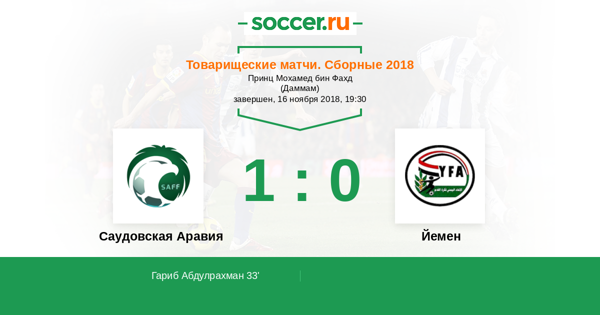 Запасные: 19 Абдулраб Ахмед (с 56'), 7 Аль-Сарори Ахмед (с 56'), 2 Аль-Моази Салем (с 67'), 18 Абдулла Ахмед Алос (с 82'), 15 Анбар Осама (с 89'), 23 Аль-Совади Сауд, 14 Саид Манаф, 5 Аль-Джарши Абдулмуаин, 6 Аль-Васмани Рами, 17 Сабара Абдул, 22 Аль-Харш Салем Али, 8 Аль-Гумаеи Абдулазиз