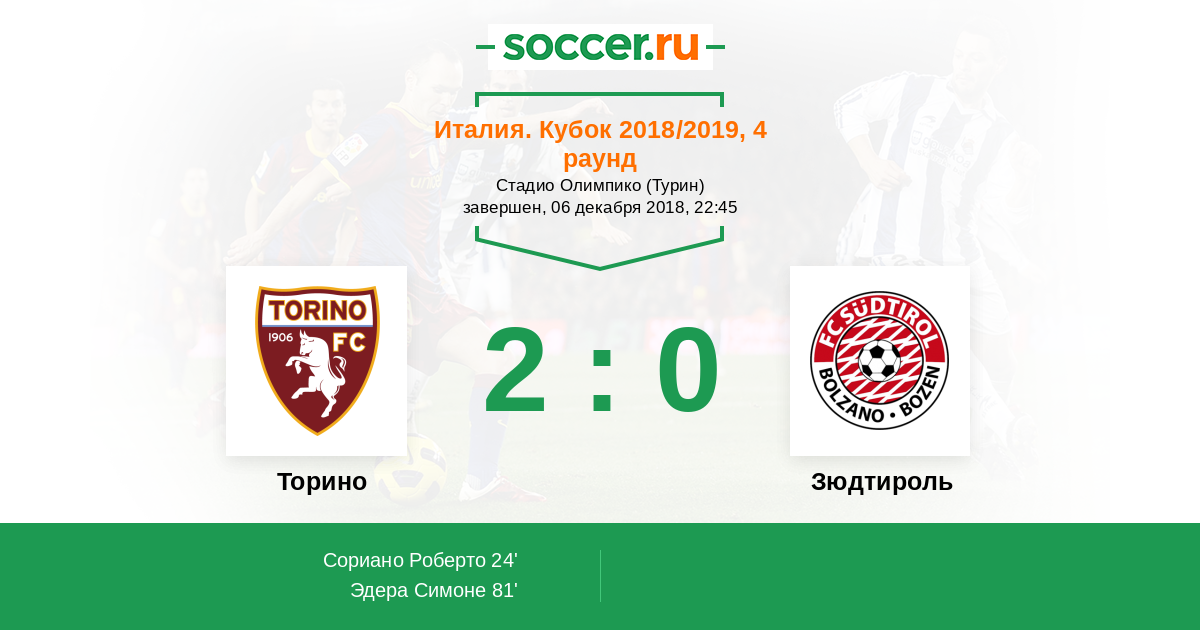 24' (1:0) Сориано Роберто (6) (Дзадза Симоне (11))