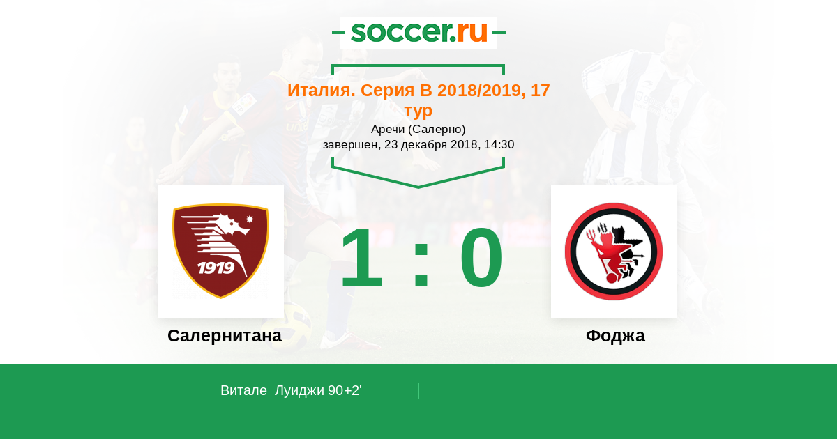 Запасные: 2 Пучино Раффаэле (с 57'), 10 Розина Алессандро (с 59'), 32 Маццарани Андреа (с 73'), 1 Ваннукки Джанмарко, 5 Мантовани Валерио, 7 Андерсон Джаван, 11 Джурич Милан, 16 Белломо Никола, 20 Палумбо Антонио, 27 Орландо Франческо, 28 Андре Андерсон, 34 Ладзари Даниэле