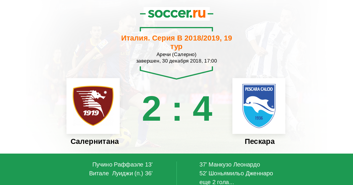13' (1:0) Пучино Раффаэле (2) (Витале Луиджи (3))