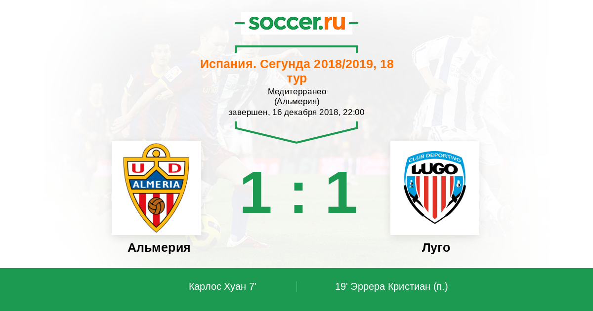 7' (1:0) Карлос Хуан (10) (Де ла Ос Сезар (6))