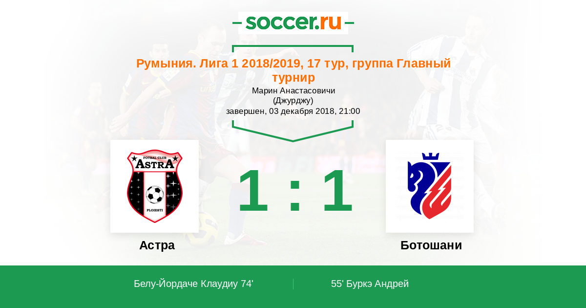 74' (1:1) Белу-Йордаче Клаудиу (70)