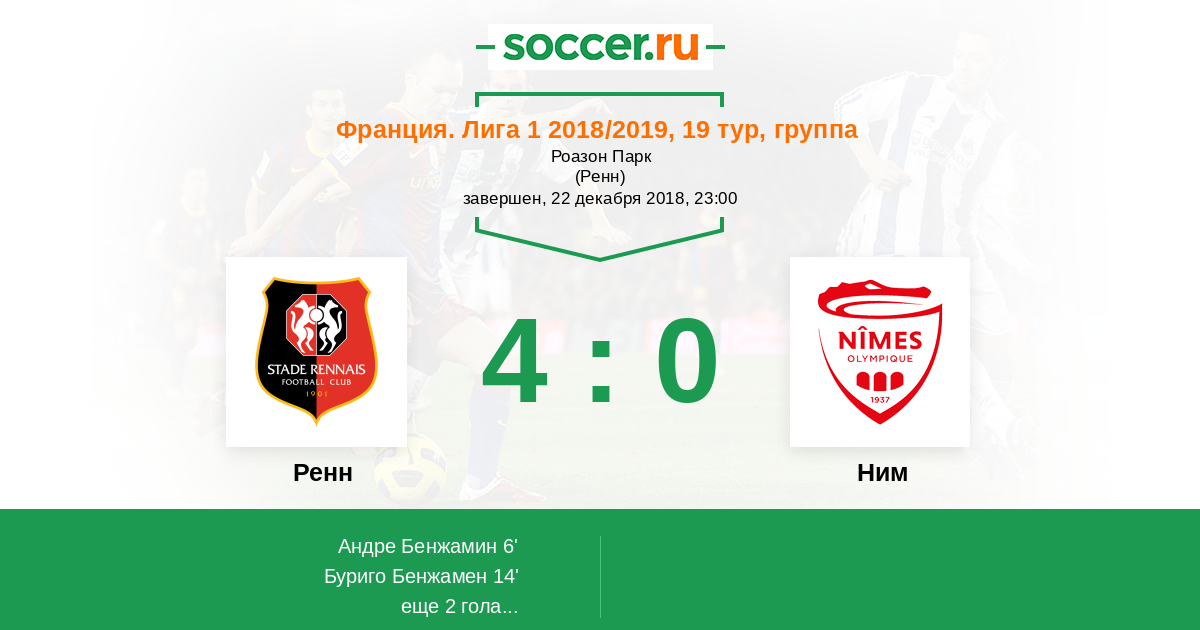 6' (1:0) Андре Бенжамин (21) (Буриго Бенжамен (14))