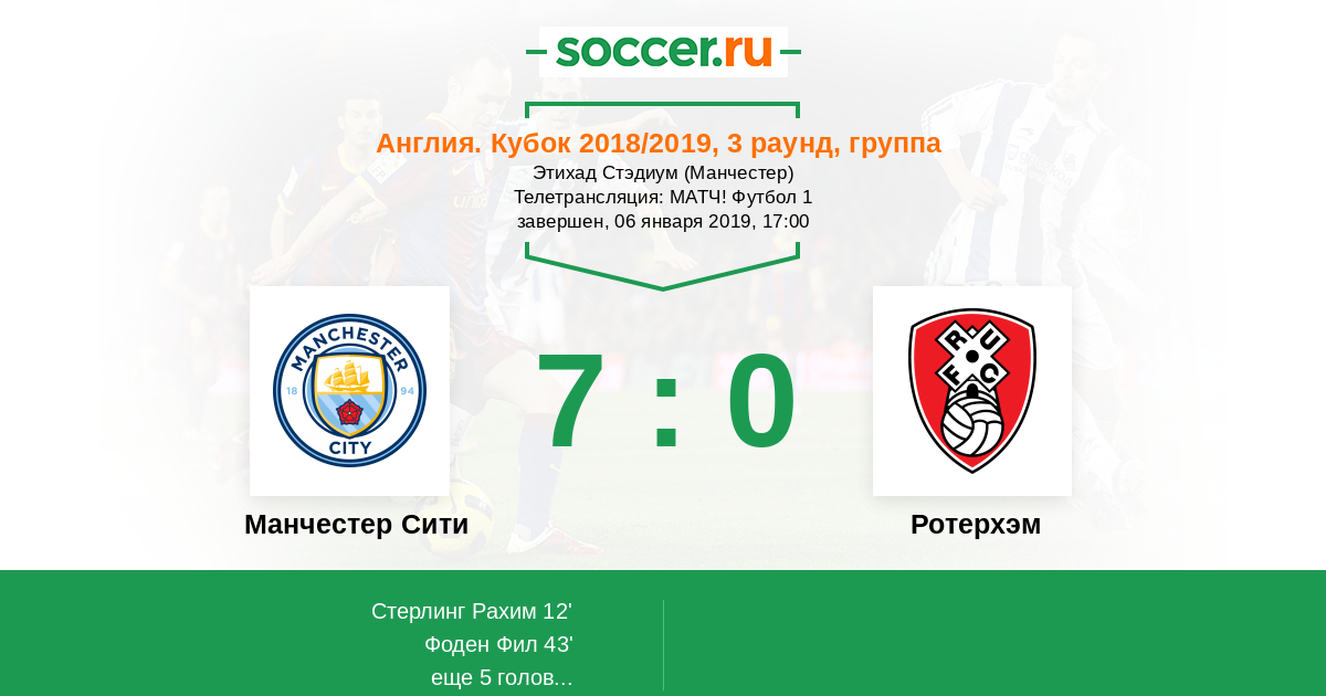 52' (4:0) Габриэл Жезус (33) (Стерлинг Рахим (7))