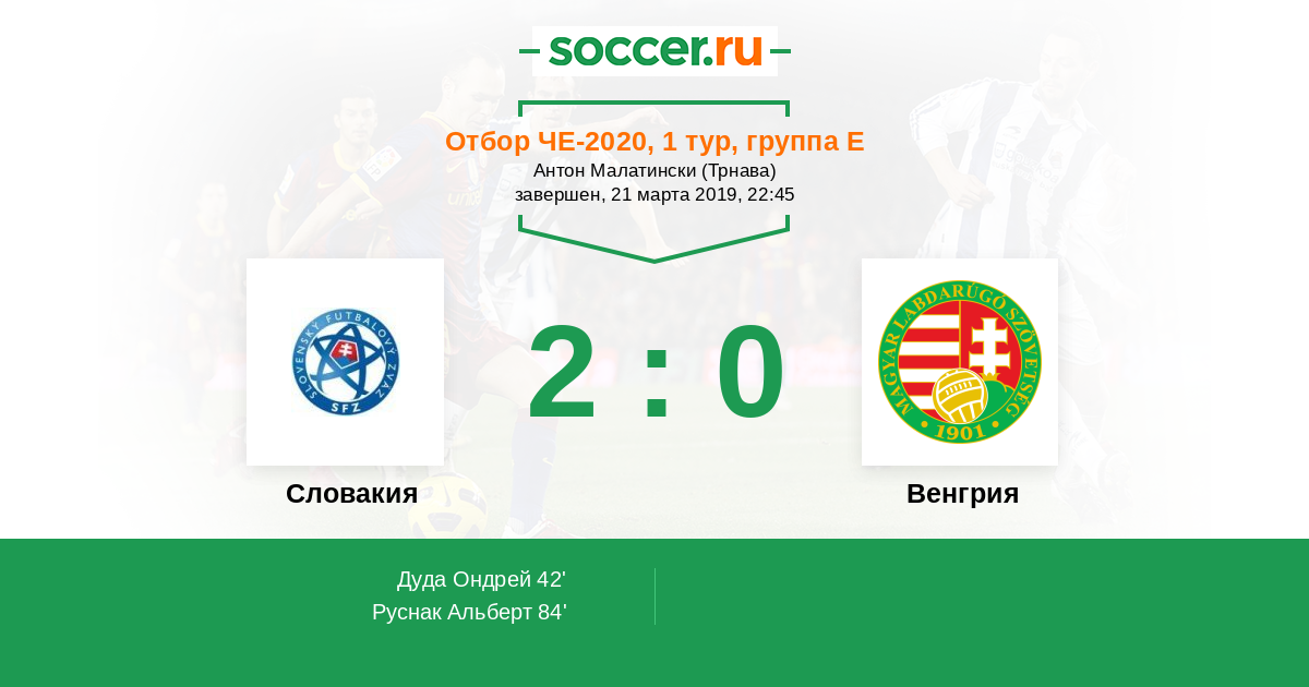 84' (2:0) Руснак Альберт (10) (Дуда Ондрей (8))