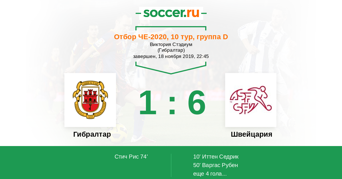 10' (0:1) Иттен Седрик (19) (Варгас Рубен (18))