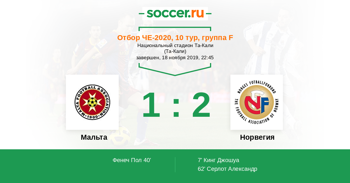 40' (1:1) Фенеч Пол (8) (Мифсуд Михаэль (9))