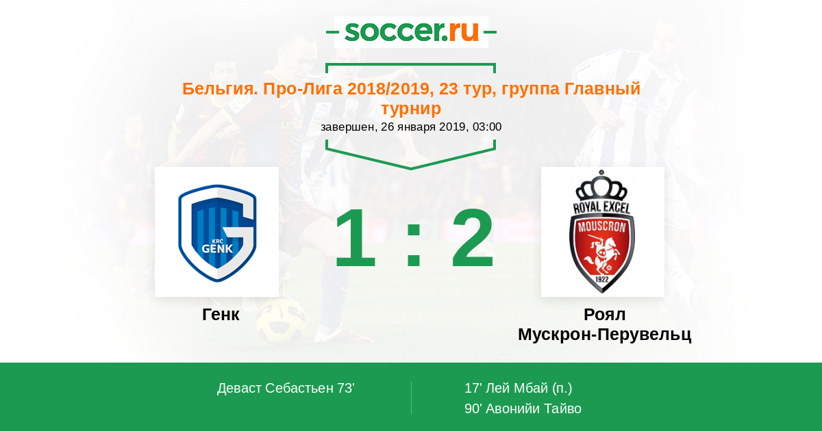 73' (1:1) Деваст Себастьен (6) (Хейнен Брайан (28))