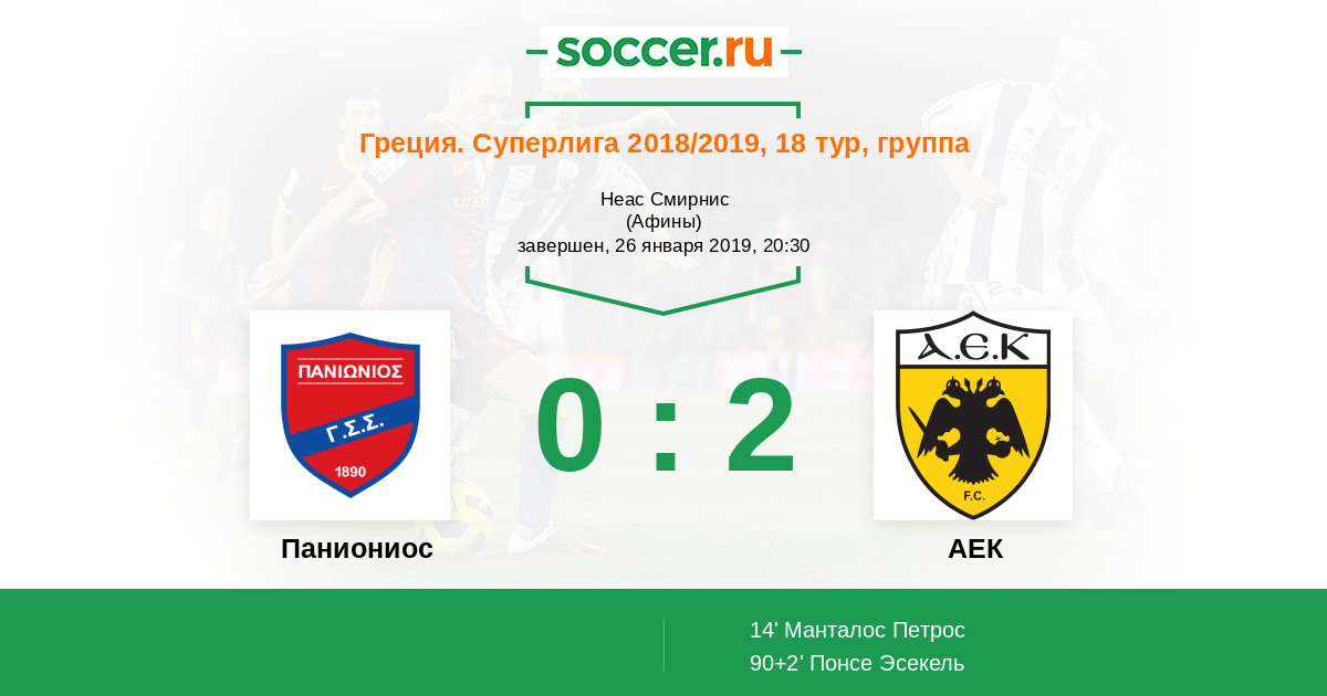 14' (0:1) Манталос Петрос (20) (Понсе Эсекель (22))