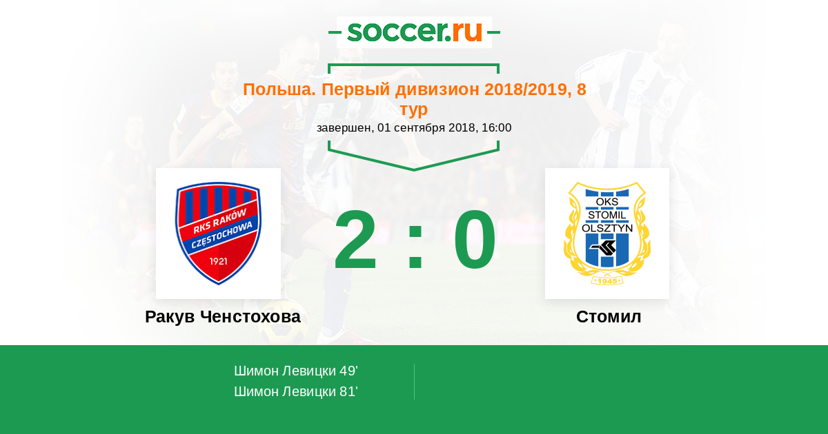49' (1:0) Шимон Левицки