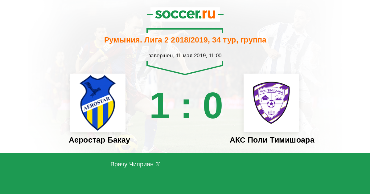 3' (1:0) Врачу Чиприан