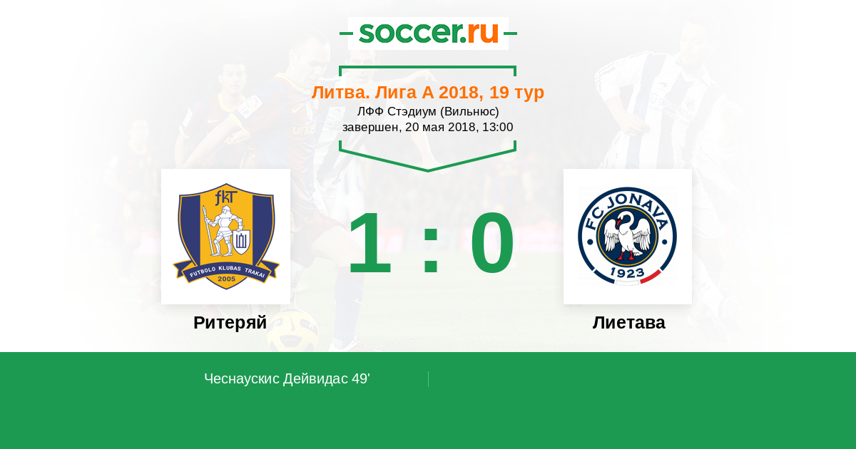 49' (1:0) Чеснаускис Дейвидас (7)