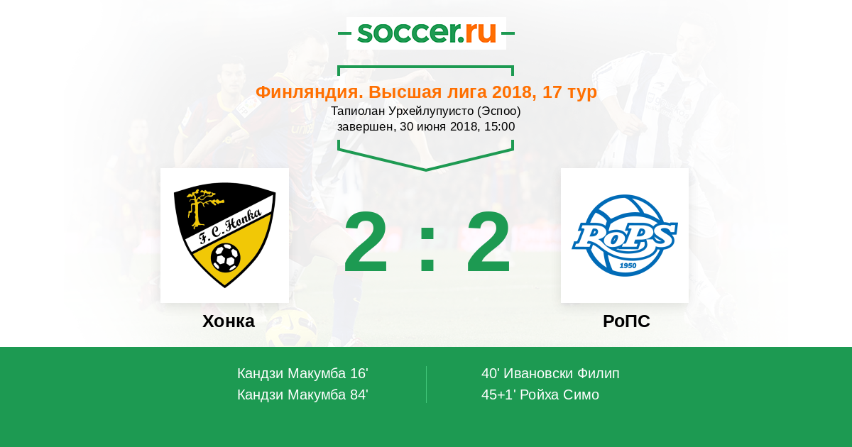 45+1' (1:2) Ройха Симо (20)