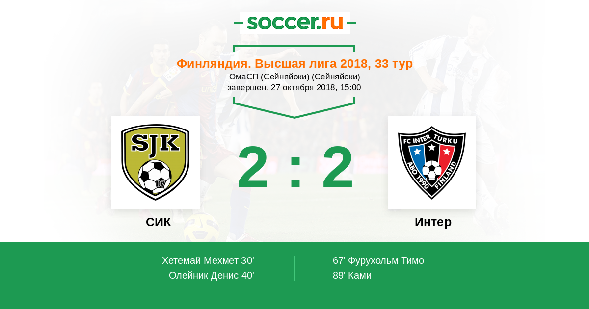 67' (2:1) Фурухольм Тимо (15)