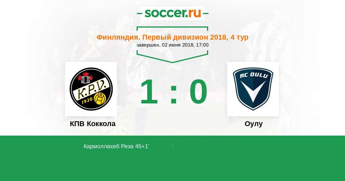 45+1' (1:0) Кармоллахеб Реза (10)