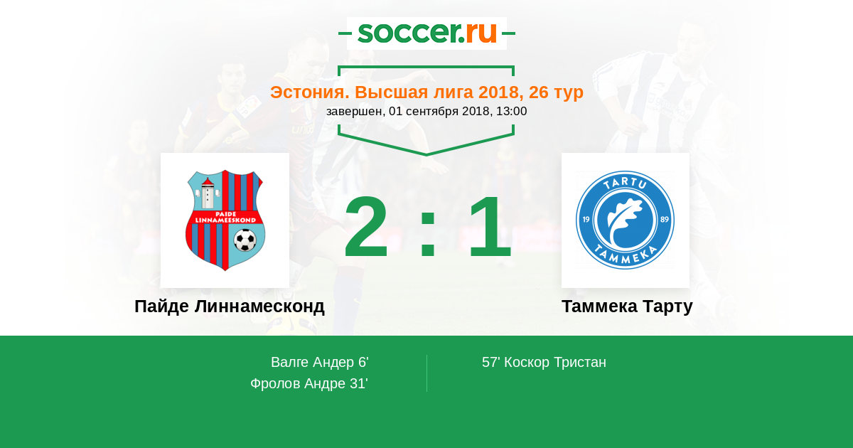 Запасные: 11 Хансон Генри (с 46'), 99 Тармо Неемело (с 59'), 13 Домов Павел (с 65'), 5 Кокла Жоэль, 18 Калдма Сорен, 27 Лиландер Майкл, 42 Румберг Каарел