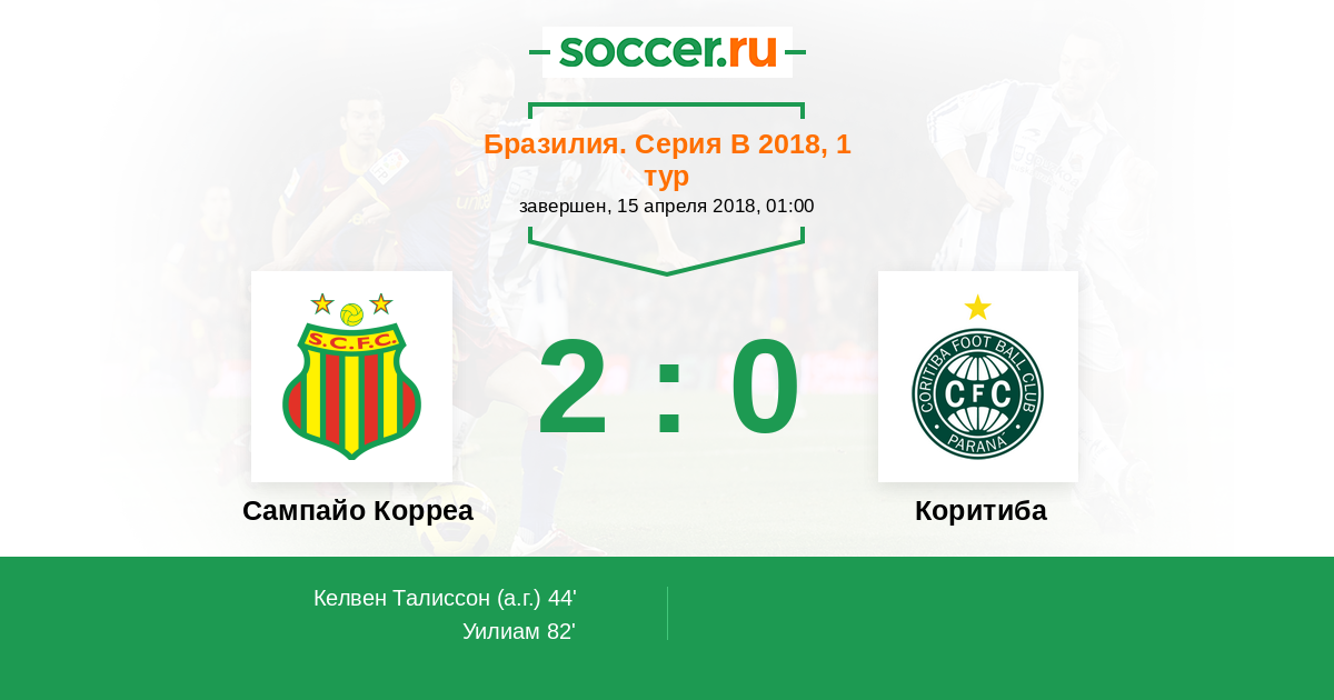 44' (1:0) Автогол Келвен Талиссон (3)