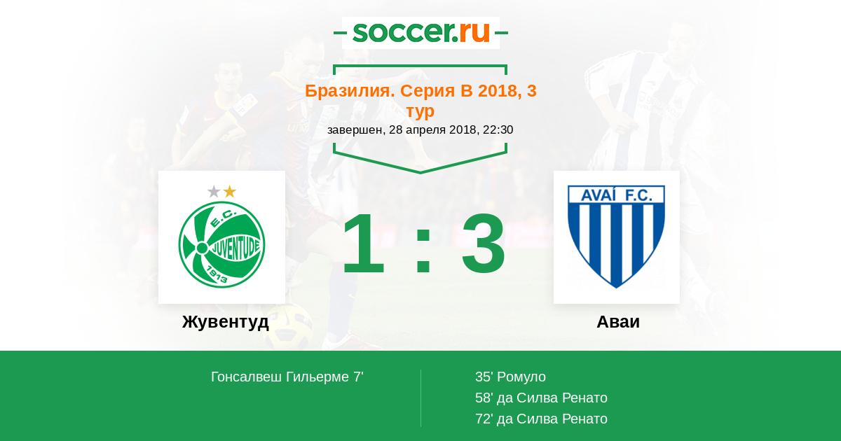 72' (1:3) да Силва Ренато (19) (Ромуло (9))