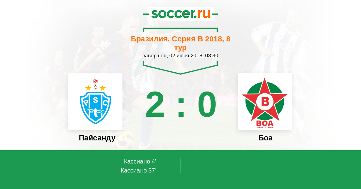 4' (1:0) Кассиано (39) (Томас (10))