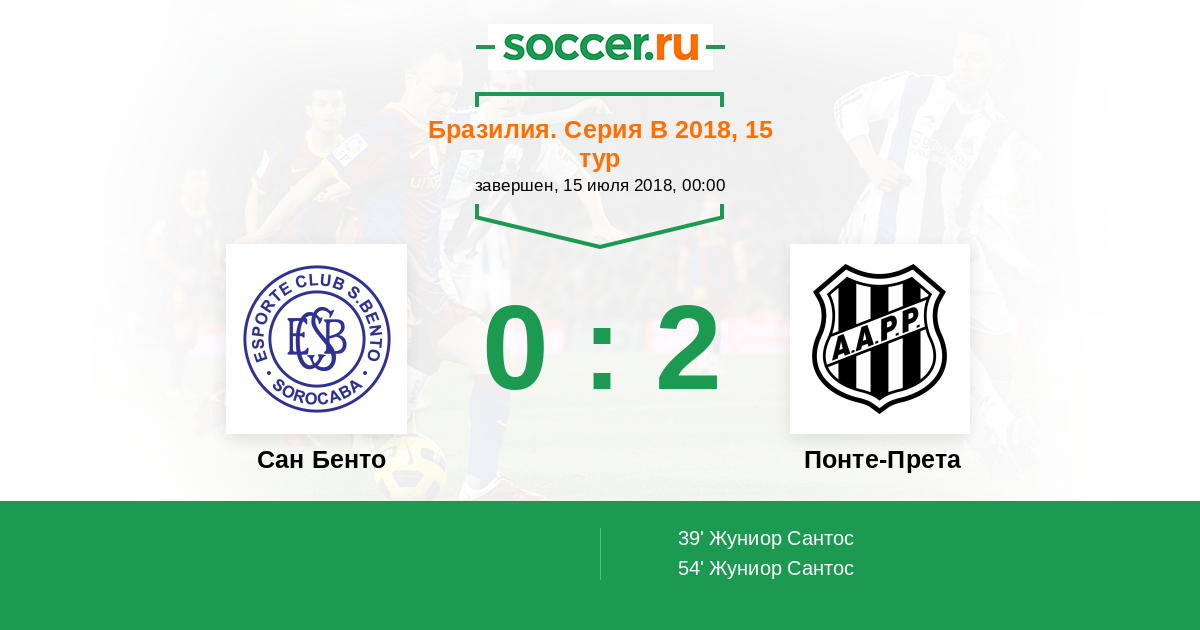 39' (0:1) Жуниор Сантос (9) (Мурило (18))