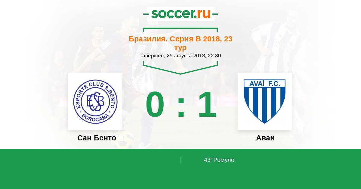 43' (0:1) Ромуло (9) (да Силва Ренато (19))