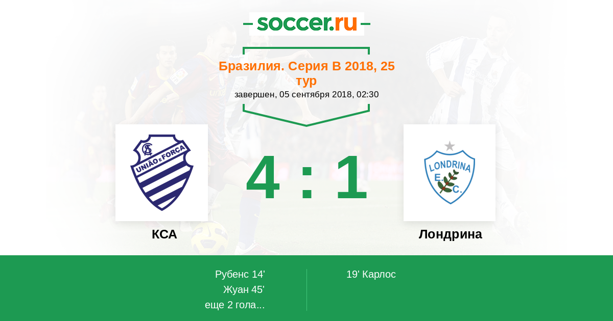 14' (1:0) Рубенс (9) (Коста Даниэль (10))