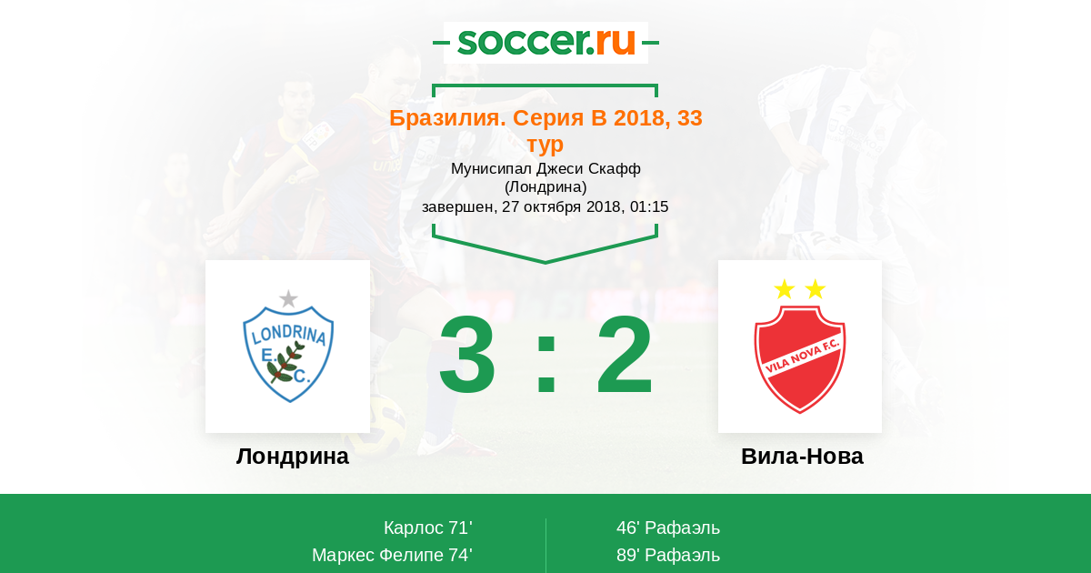 71' (1:1) Карлос (23)