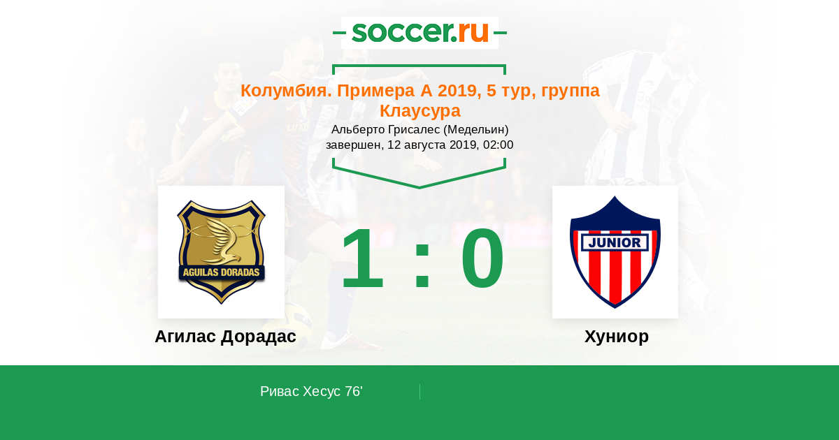 76' (1:0) Ривас Хесус (14) (Отальваро Хуан (16))