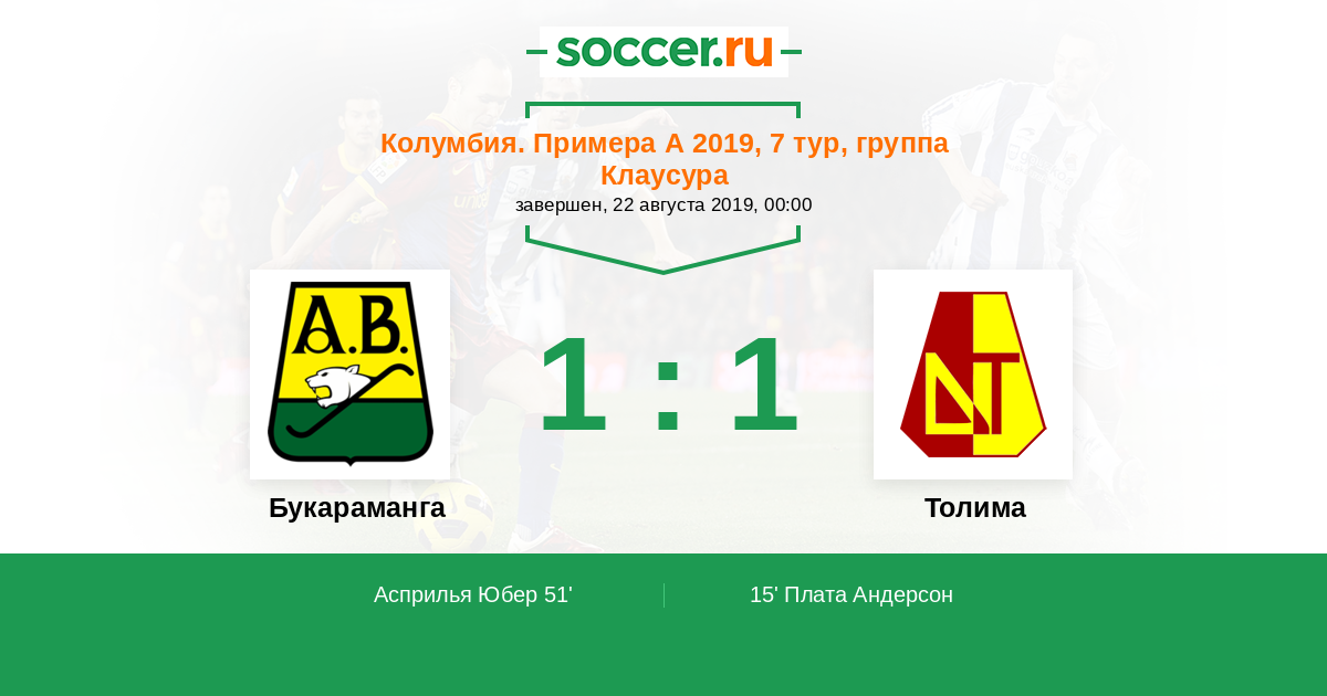15' (0:1) Плата Андерсон (11) (Вальдес Диего (19))